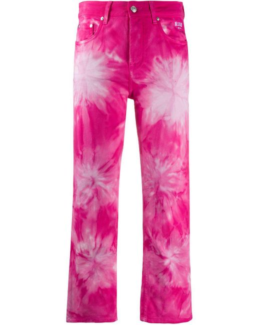 Tie Dye Cropped Jeans Pink Msgm Jeans Accuweather Shop